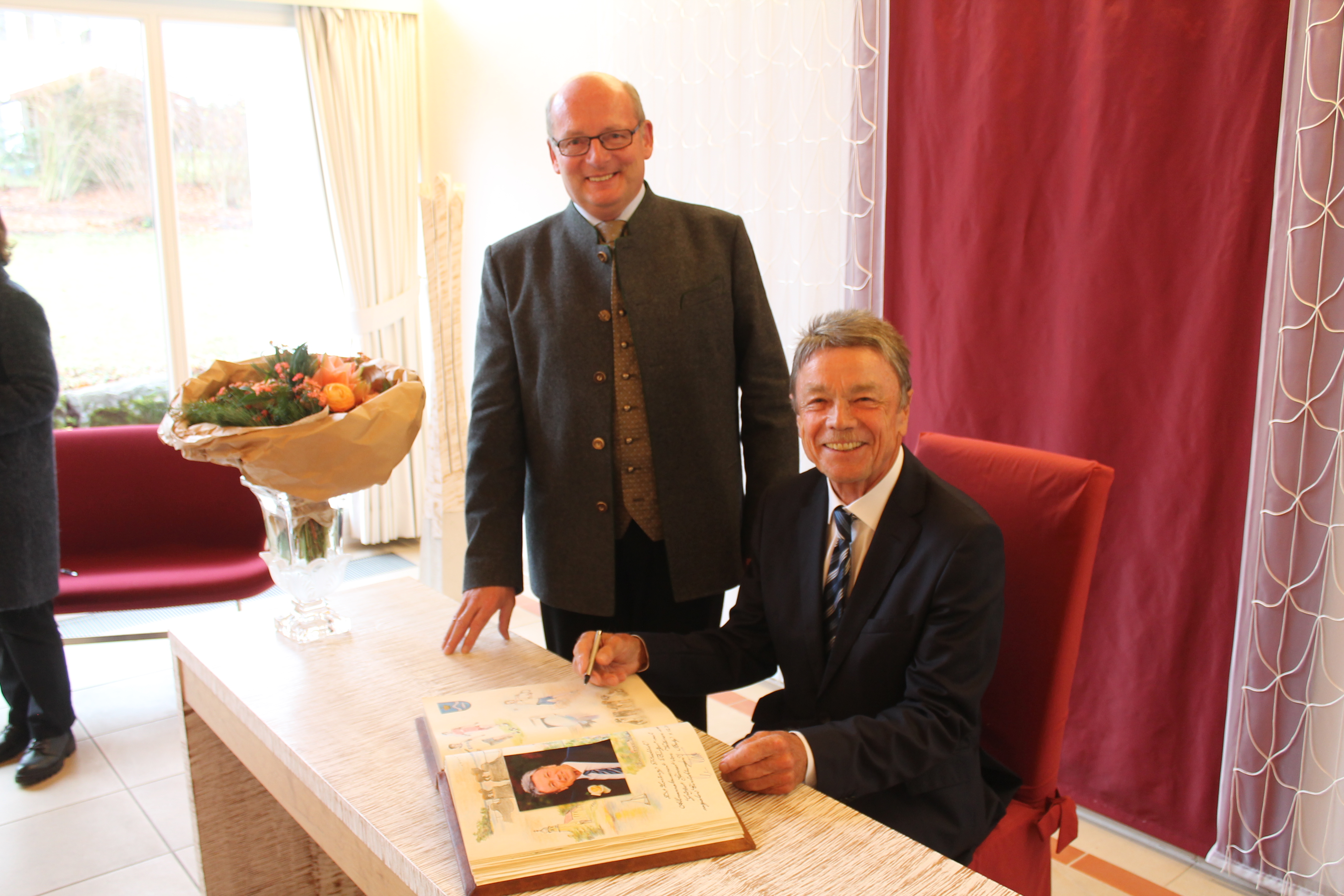 Dr. Friedrich mit Bürgermeister Monn bei der Eintragung in das Goldene Buch der Gemeinde Berg